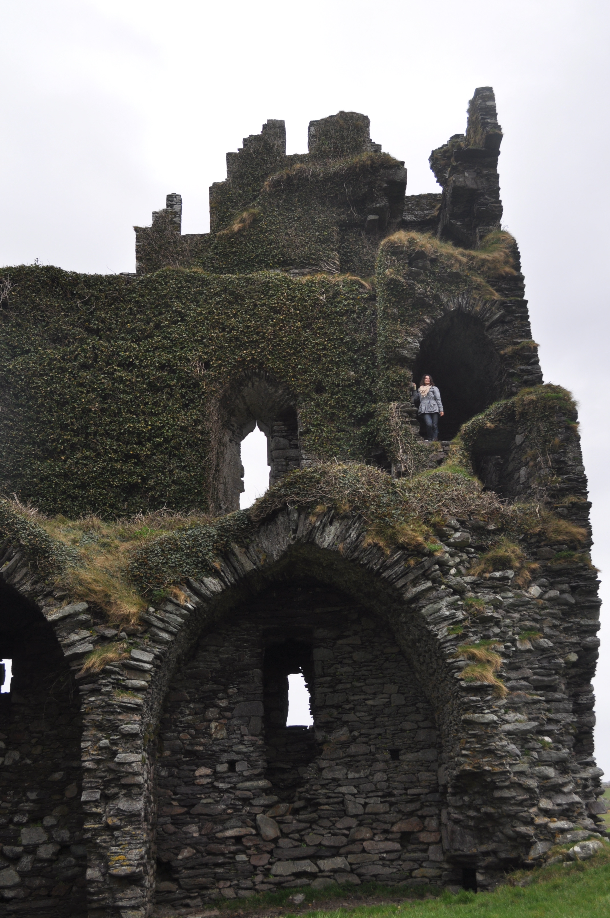 We climb all over the crazy castle, it’s sturdy stone bones still holding up, maybe the ivy helps hold it up too!